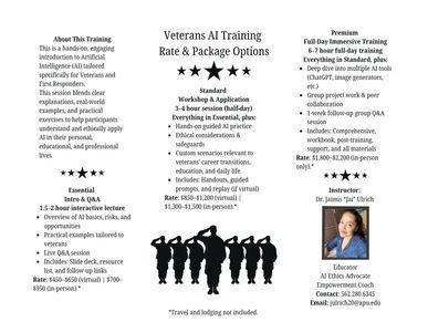 This is a hands-on, engaging introduction to Artificial Intelligence (AI) tailored specifically for Veterans and First Responders.